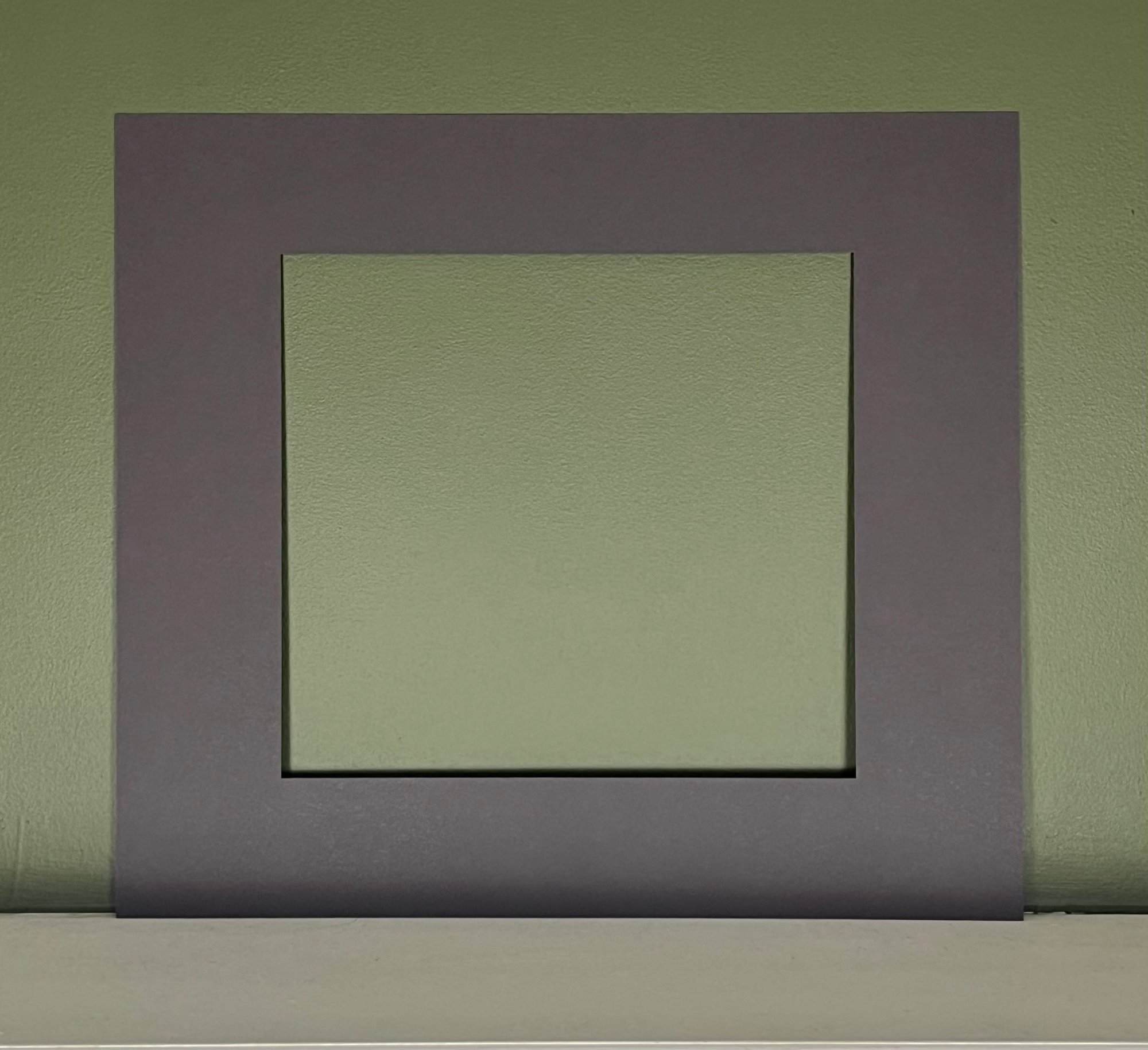 Because of the artwork's unique dimensions, an optional custom and acid free dark grey matboard is available for purchase to assist with framing. The mat fits into any frame that is 16 x 18 inches.